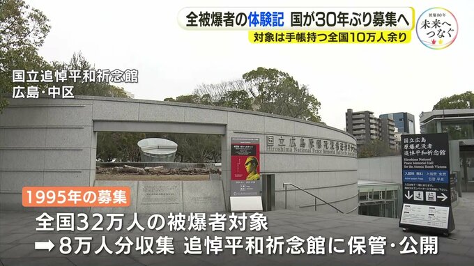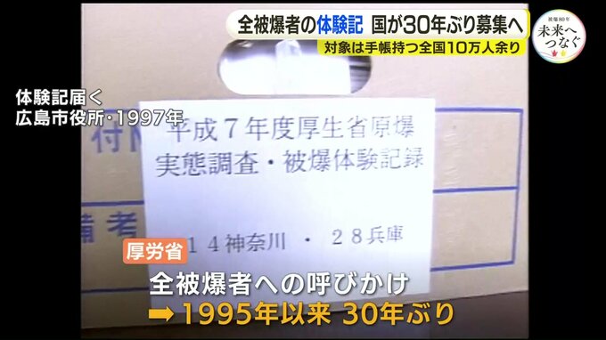 厚生労働省によりますと、全ての被爆者に呼びかけるのは、被爆50年の1995年以来、実に30年ぶりだということです。当時は、全国32万人の被爆者が対象で、集まった体験記は、およそ8万人分。追悼平和祈念館に納められ、公開されています。