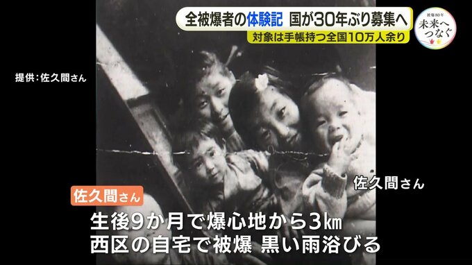 生後9か月のときに爆心地から3㎞の、西区の自宅で被爆、母親の背中で「黒い雨」を浴びたという佐久間さん。30年前の募集では体験記は書いていませんでしたが、今回は、残す意義を感じています。