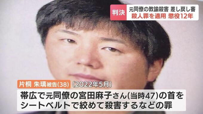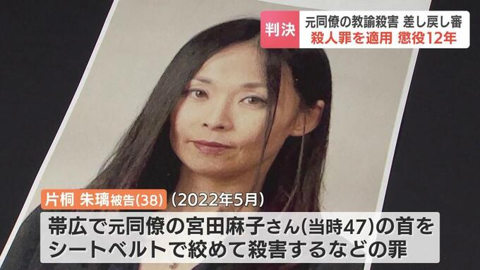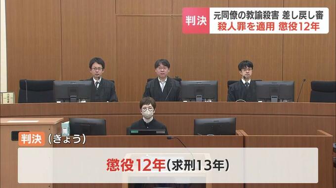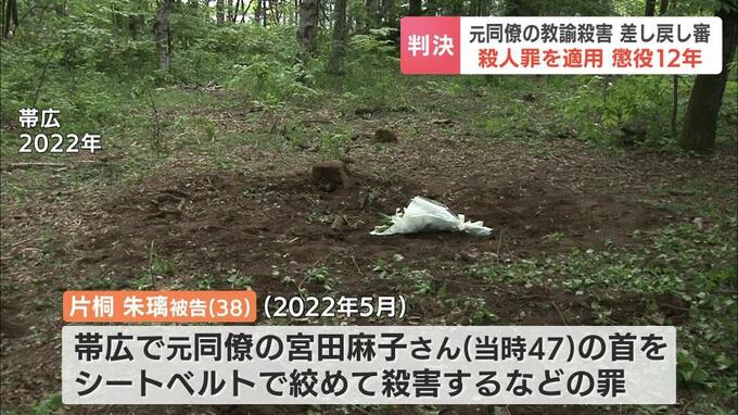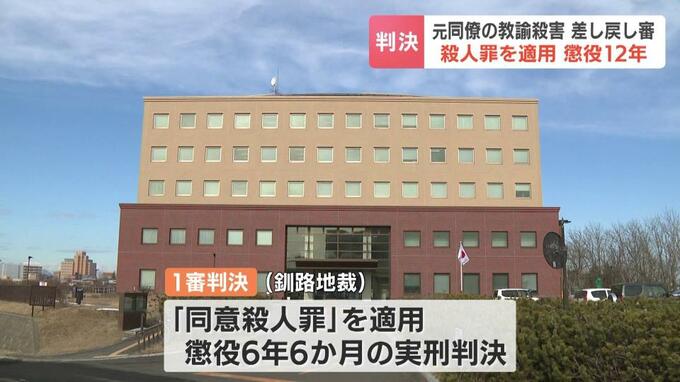 3年前、北海道帯広市で元同僚の女性教諭を殺害した罪などに問われている男の、やり直しの裁判員裁判で、釧路地裁は「殺人罪」を適用し、被告に懲役12年の実刑判決を言い渡しました。