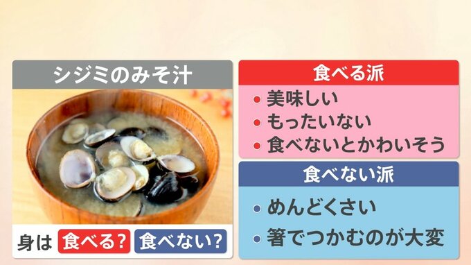 いま冬の旬を迎えている「シジミ」。このシジミをめぐりSNSで論争が起きているといいます。みそ汁のシジミ、あなたは食べますか?食べませんか?
