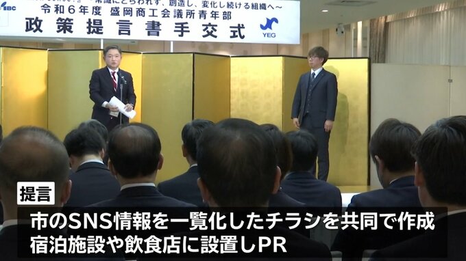 観光客の利便性の向上につなげようと、若手商工業者が効果的な情報発信について、盛岡市へ提言を行いました。