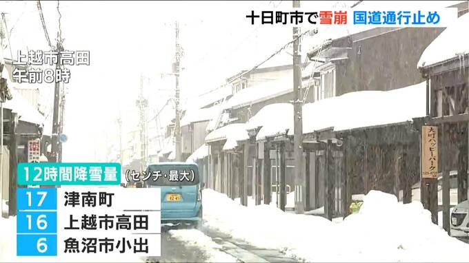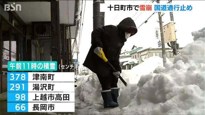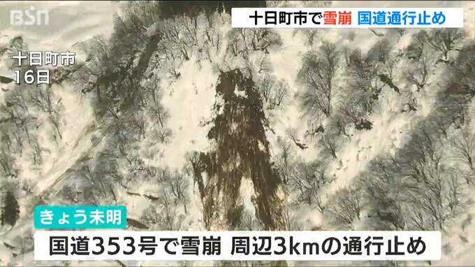十日町市では今週16日に続き、ほぼ同じ場所で雪崩が発生し国道353号が前回と同じ3キロにわたって通行止めとなっています。