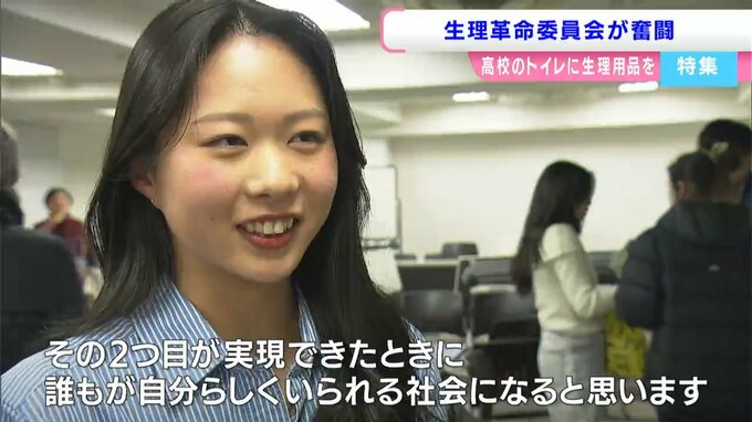 「トイレットペーパーと同じように、生理用品をというものの2つの意味での実現。実際に物としてそこにある。生理を話しやすい話題に。生理のことを大切にできる社会。その2つ目が実現できたときに、誰もが自分らしくいられる社会になると思います」