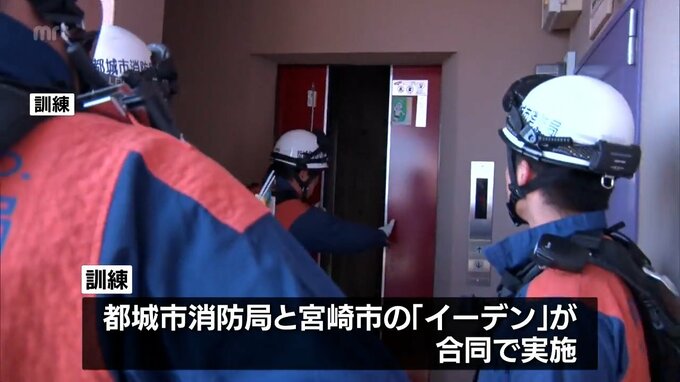 この訓練は、都城市消防局とエレベーターのメンテナンスなどを行う宮崎市の「イーデン」が合同で行ったものです。