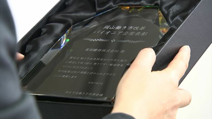 時間外労働の削減などに積極的に取り組む企業に贈られる「岡山働き方改革パイオニア企業」の今年度の受賞企業が決まり、岡山市内で表彰式が行われました。