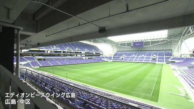 エディオンピースウイング広島で、巨大壁画の第2弾が報道陣に公開されました。