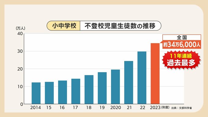 文部科学省によると、不登校になっている児童・生徒の数は昨年度、全国でおよそ34万6000人。