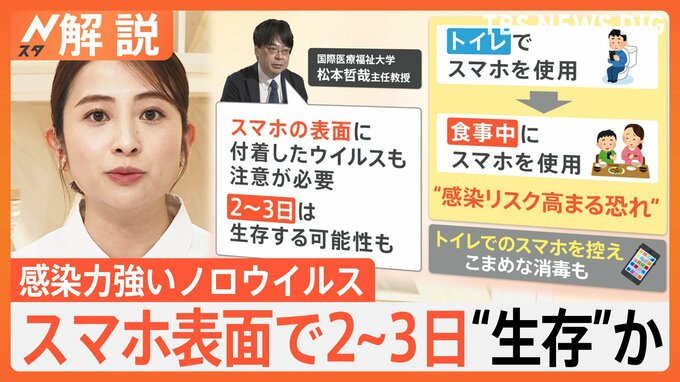 ノロウイルスの患者が急増しています。実は、カキなどの二枚貝からだけでなく、身近な「あるもの」にも感染のリスクが潜んでいます。南波雅俊キャスター:猛威をふるっているノロウイルスの症状などを見ていきます…