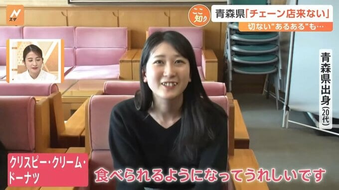 青森県出身(20代)「クリスピー・クリーム・ドーナツ。ニュースとかでも話題になってた時期だったので、食べてみたらおいしくて(東京に)住めて食べれるようになって嬉しいです」
