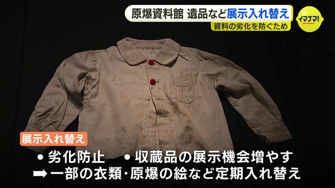 原爆資料館では、資料の劣化を防いだり、収蔵品を展示する機会を増やすため、一部の衣類や「原爆の絵」は、定期的に展示を入れ替えています。