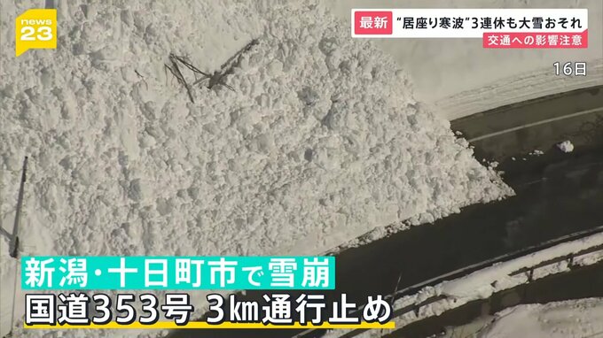 新潟県十日町市では今週16日に続き、ほぼ同じ場所で雪崩が発生。国道353号が前回と同じ3キロにわたって通行止めとなっています。
