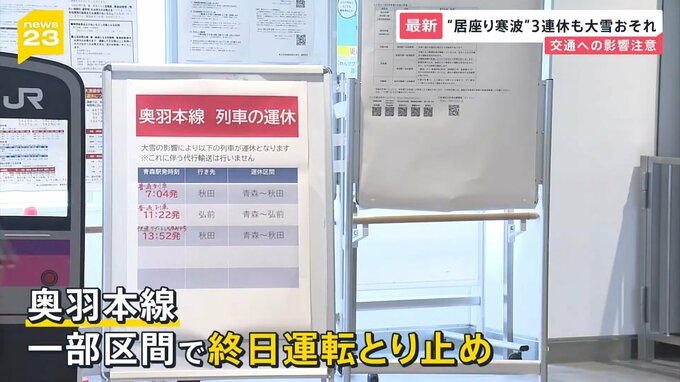 積雪が今シーズンで最も多い145センチ(21日・午後9時時点)となっている青森県弘前市では、大雪のため県内を走る奥羽本線の一部区間で終日、運転を取りやめる事態に。