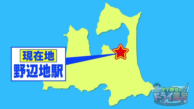 青森の温泉や銭湯まで、青森市出身でミュージシャン&芸人のタマ伸也さんがドライブするシリーズ【ドライ風呂】。今回の出発地点は、野辺地町(のへじ・まち)にある『野辺地駅』です。