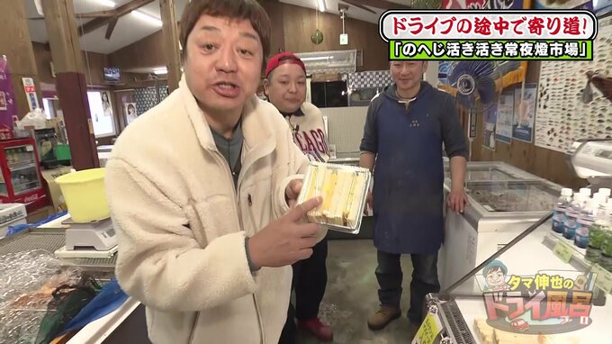 お風呂の前に、恒例の寄り道。野辺地町は海の幸が豊富で、斗澤さんはバーベキューをするときに十和田市から野辺地町までホタテを買い行くのだとか。
