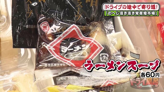 お湯で割って使う1食分のラーメンスープ(各60円)が、タマさんの東京のお知り合いの方々にものすごく喜ばれるそう。