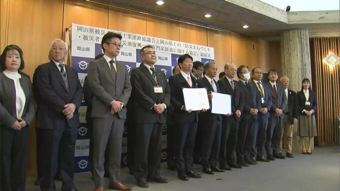 岡山県は災害時に迅速な被災者支援が行えるよう、弁護士や土地家屋調査士などでつくる連絡協議会と今月18日、協定を結びました。