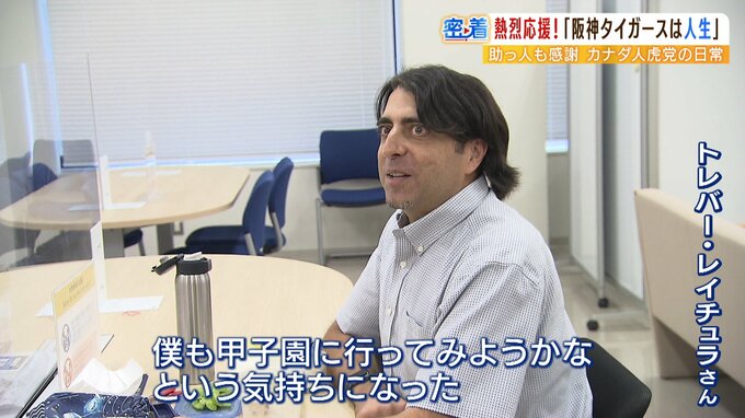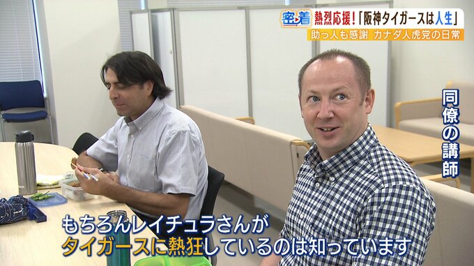 「阪神は人生に似ている」カナダ人虎党の“熱烈な愛” 助っ人外国人の家族から感謝の連絡も!タイガースの試合情報を英語で発信 毎日放送 2022年10月10日(月) 14:57 国内 話題・グルメ 同僚に誘われて甲子園へ…気付けばタイガースに夢中に でもなぜ、ここまでタイガースを好きになったのでしょうか。そのきっかけを聞きました。 (トレバー・レイチュラさん) 「教員室で周りの教員たちの会話を聞いて、あとスポーツ紙が置いてあって、それを毎日のように見て聞いて、僕も甲子園に行ってみようかなという気持ちになったんです」 同僚に誘われ、初めて踏み入れた甲子園。球場の雰囲気に衝撃を受け、気付けば夢中になっていたそうです。 (同僚の講師) 「もちろんレイチュラさんがタイガースにとても熱狂しているのは知っています。球場にも何試合か一緒に観にいきました」