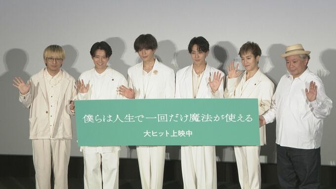 FANTASTICSの八木勇征さん、俳優の井上祐貴さん、櫻井海音さん、IMP.の椿泰我さんが、映画『僕らは人生で一回だけ魔法が使える』公開記念舞台挨拶に登壇。原作・脚本の鈴木おさむさん、木村真人監督とともに撮影秘話などを語りました。