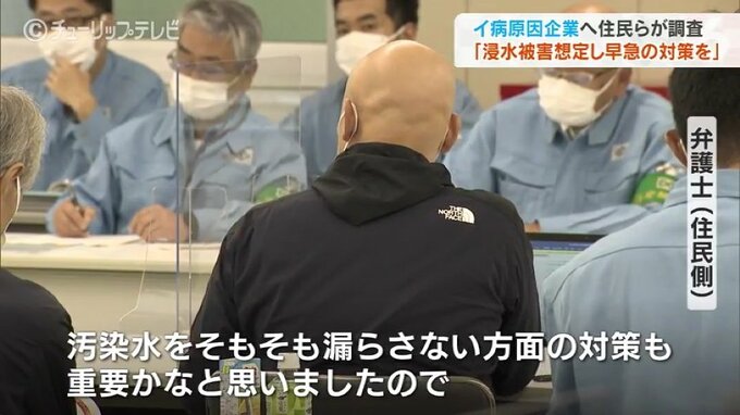 調査を終えた住民らは、企業側との質疑応答で、飛騨市の新たな洪水ハザードマップに工場の一部が追加されたことを指摘。工場が浸水すればタンクや配管などから汚染水が流出する恐れがあることから、早急の対策を求めました。