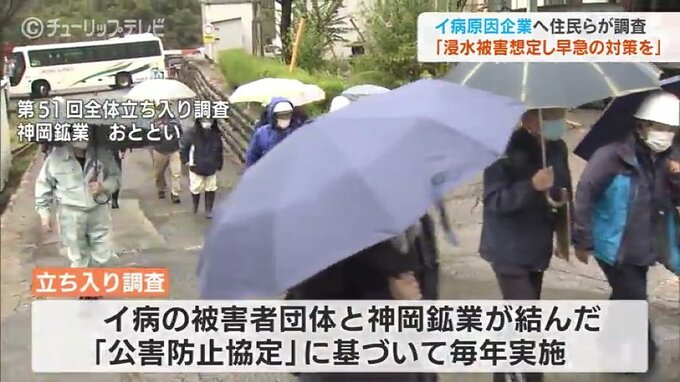 神通川流域で発生した四大公害病の1つ、イタイイタイ病。被害地域の住民らでつくる被害者団体が8日、岐阜県の原因企業へ立ち入り調査を行いました。