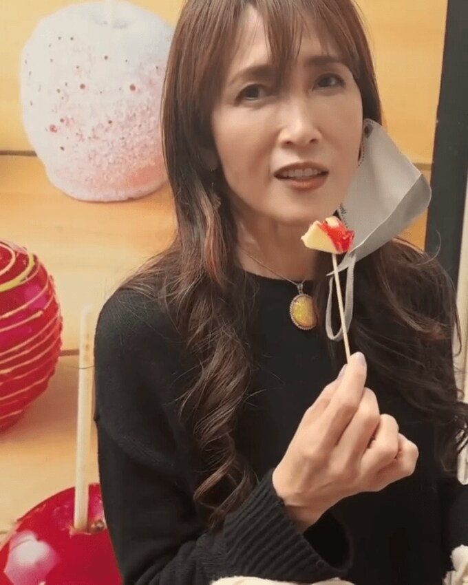 工藤静香さんは、番組の撮影に臨んだことを明かすと「3日連続りんご飴を食べました」と、動画を投稿。