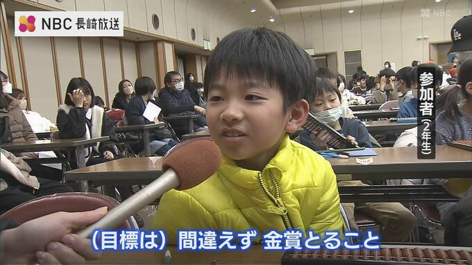 子どもたちが日頃のそろばん学習の成果を披露する「ちびっこそろばん大会」が23日、長崎市で開かれました。
