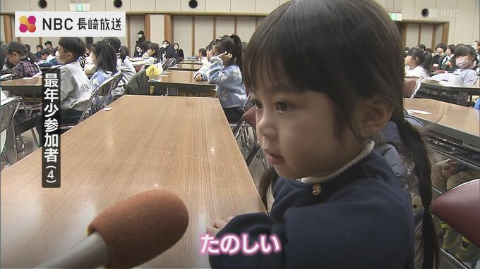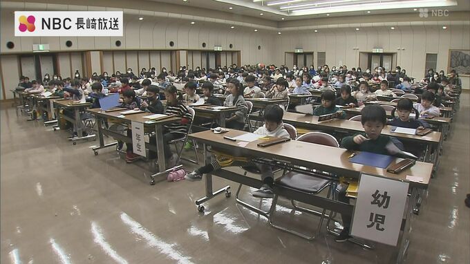 23日の大会には長崎市・時津町・長与町のそろばん教室に通う幼児と小学1、2年生の児童およそ100人が参加しました。