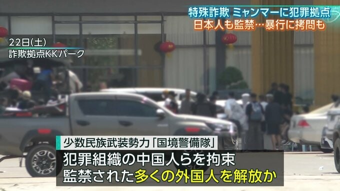 22日、詐欺拠点の「KKパーク」に、ミャンマーの少数民族武装勢力「国境警備隊」が突入。犯罪組織の中国人らが拘束され、監禁されていた多くの外国人が解放されたとみられています。