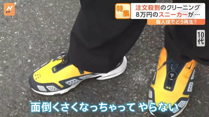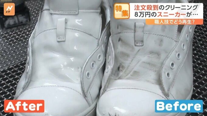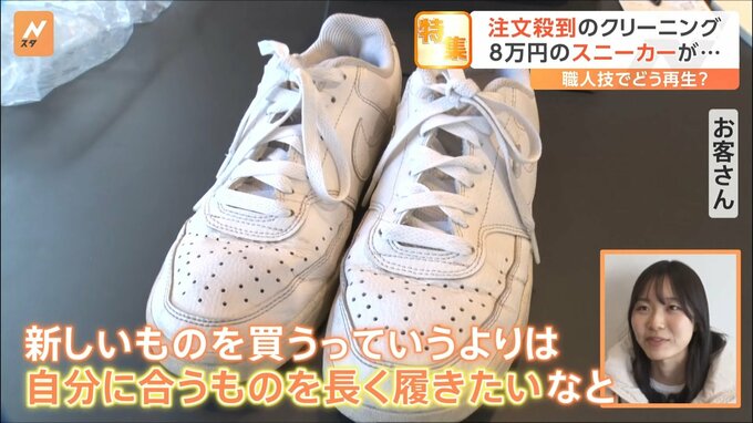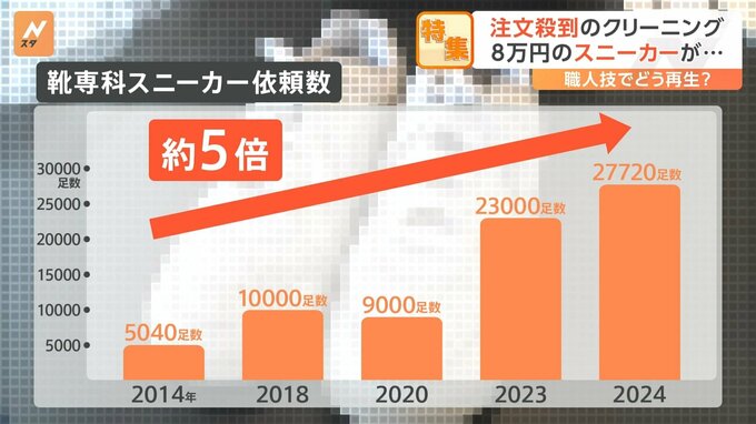 実際に、このお店のスニーカーの依頼数は10年前からおよそ5倍と急増しているんです!