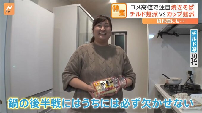 「焼きそばの麺です。鍋の後半戦にはうちには必ず欠かせない」
