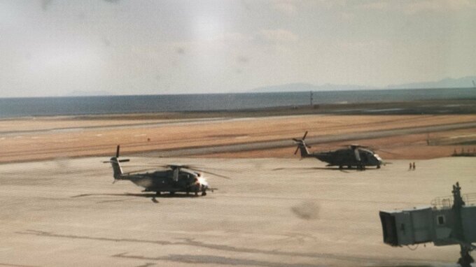 24日午後、大分空港にアメリカ軍のヘリコプター2機が緊急着陸しました。空港によりますと、目的地の天候不良のためということです。