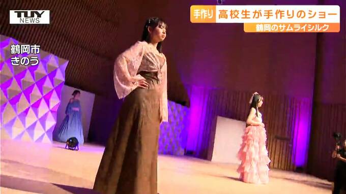 鶴岡市の特産である鶴岡シルクを使った高校生による手作りのファッションショーがきのう鶴岡市で開かれました。華やかな衣装を身にまとい、颯爽と歩くモデルたち。衣装は、鶴岡特産のシルク生地「サムライシルク」…