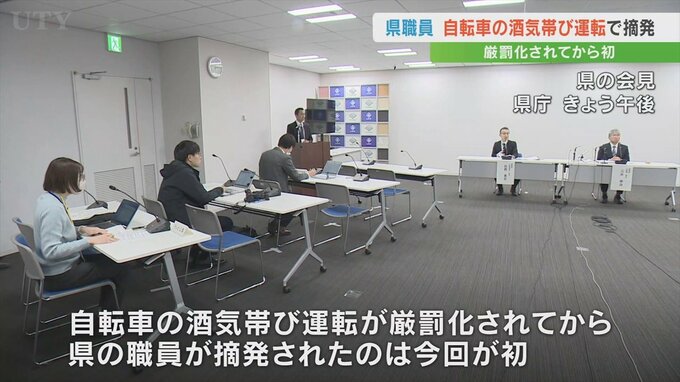 自転車の酒気帯び運転が厳罰化されてから県の職員が摘発されたのは今回が初めてで、県は他県の状況も踏まえて処分を決定するとしています。