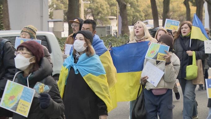 「ウクライナに平和を」ウクライナ侵攻から24日で3年です。名古屋・栄では、東海地方に住むウクライナ避難民や、活動を応援したいと集まった日本人など、約130人がデモ行進しました。参加者はウクライナの国旗やプ…