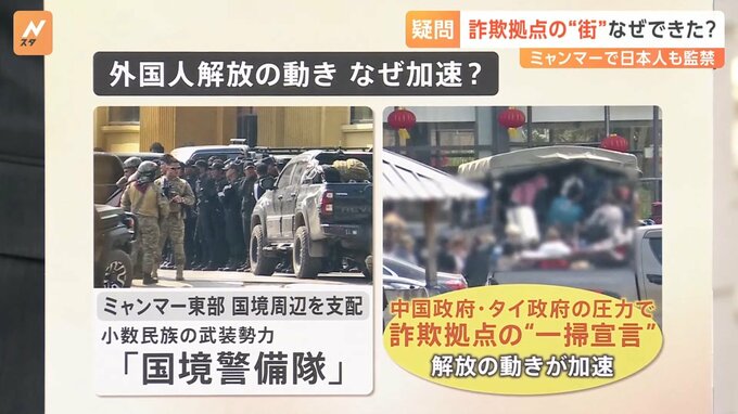 犯罪集団の活動を黙認し、犯罪集団から収益を得ているのではないかと批判された部隊ですが、中国政府やタイ政府の圧力で、詐欺拠点の“一掃宣言”を行ったため、外国人などを解放する動きが加速しているということです。