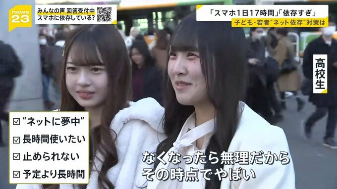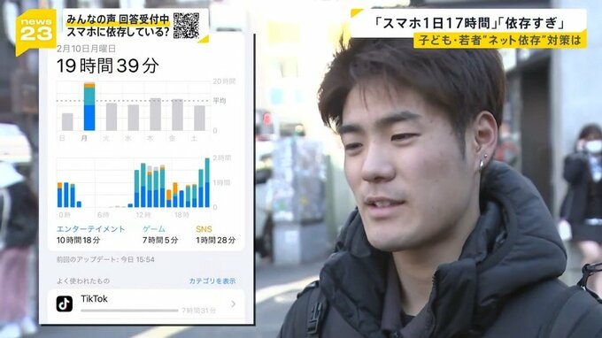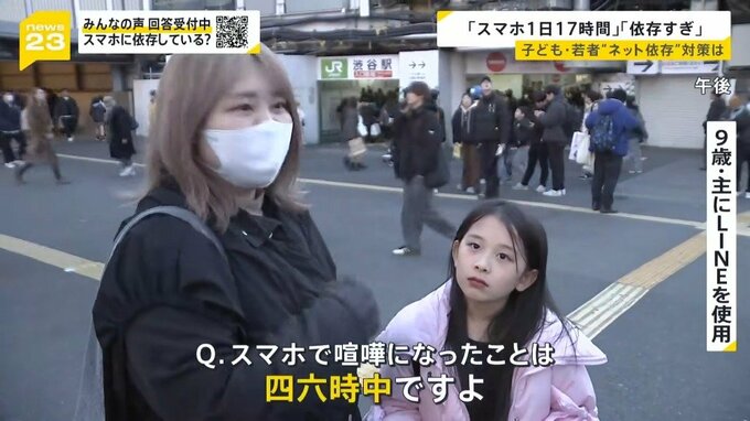 オーストラリアでは子どもの一部のSNSの利用を禁止する法案が可決されるなど、「子どものネット利用」問題は、世界でも議論が沸き起こっています。日本でも関東圏内の中高生を対象に行われた調査で、およそ4人に1人が依存の傾向にあるという結果が出ました。街で中高生の声を聞くと、“スマホ長時間使用”の実態が…