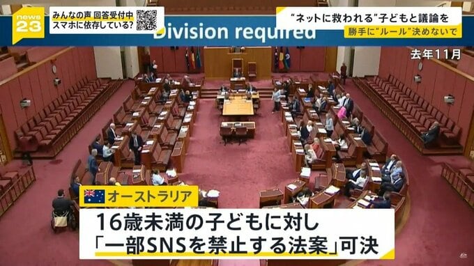 オーストラリアでは2024年、16歳未満の子に対し一部のSNSを禁止する法案が可決されました。法による規制をこども達はどう考えるのか。スマホ利用について話し合うイベントに参加した中高生は…