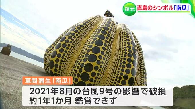 昨年(2021年)8月の台風9号の影響で流された、香川県直島の草間彌生さんのアート作品「南瓜」が復元されました。瀬戸内国際芸術祭でにぎわう島では、この作品にも多くの人が詰めかけています。(杉澤眞優キャスター…