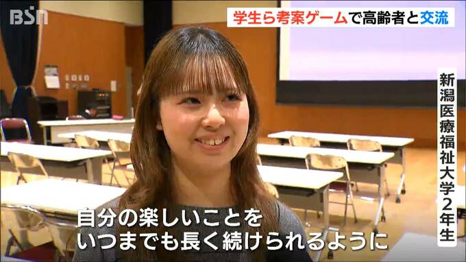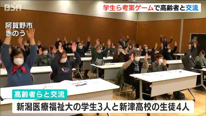 高齢者などを対象にした健康教室が新潟県 阿賀野市で24日開かれ、大学生らが考案したオリジナルの運動を通して高齢者と交流を深めました。