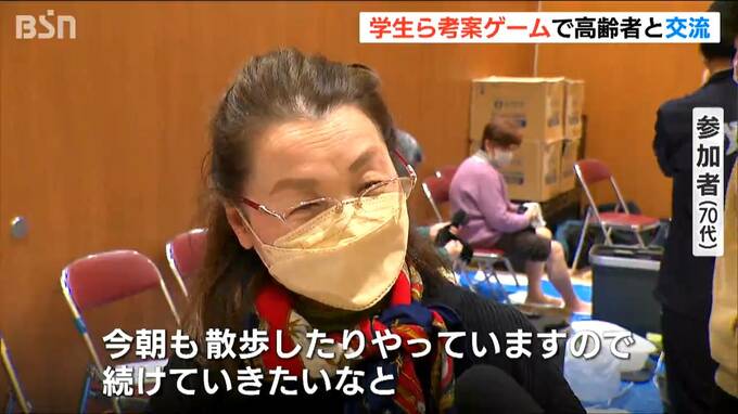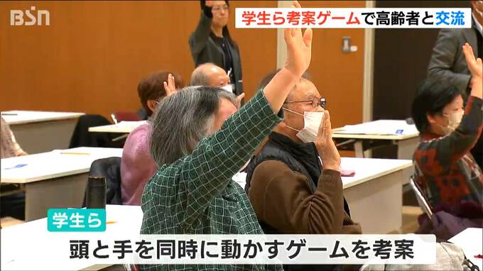 高齢者の脳の活性を促すため、じゃんけんや手を使うゲームを学生らが考案し、参加した人たちは楽しみながら実践していました。