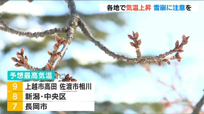 強烈な寒波の影響が終わり、25日の新潟県内は各地で気温が上がる見込みです。積雪が増えているところでは、なだれに注意が必要です。