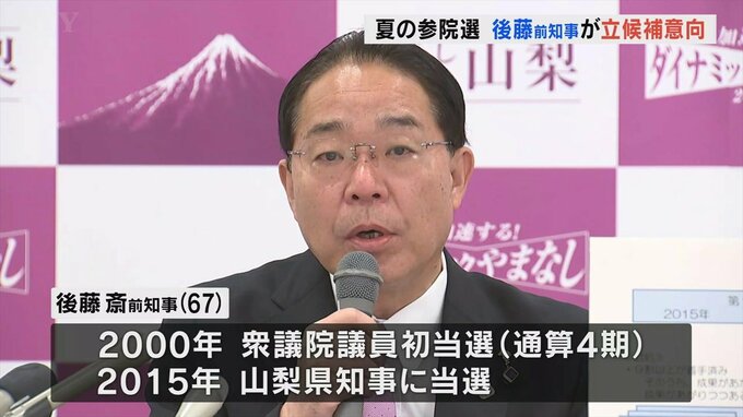 この夏の参議院選挙の山梨選挙区に後藤斎前知事が立候補する意向を示していることがわかりました。
