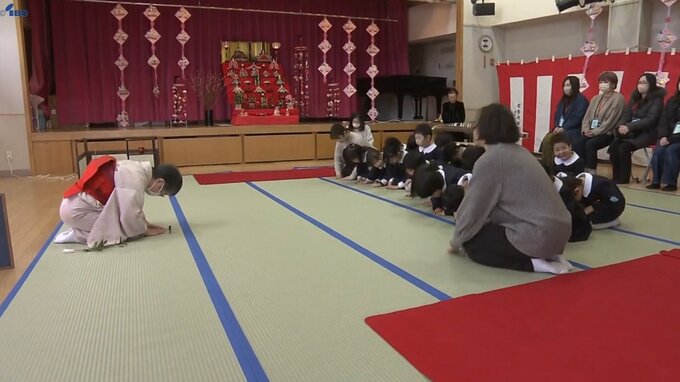 3月3日のひな祭りを前に盛岡市の幼稚園で茶道体験が行われ、園児が和の文化を学びました。