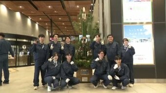 JR松山駅に高さ3メートルのジャンボ門松が登場 地元高校生が1か月かけて製作し1月12日まで展示 愛媛・松山市