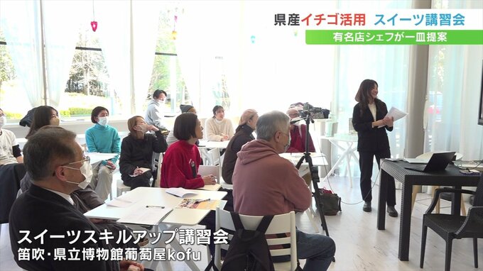 山梨県産のイチゴを使ったスイーツを考える講習会が山梨県笛吹市で開かれました。