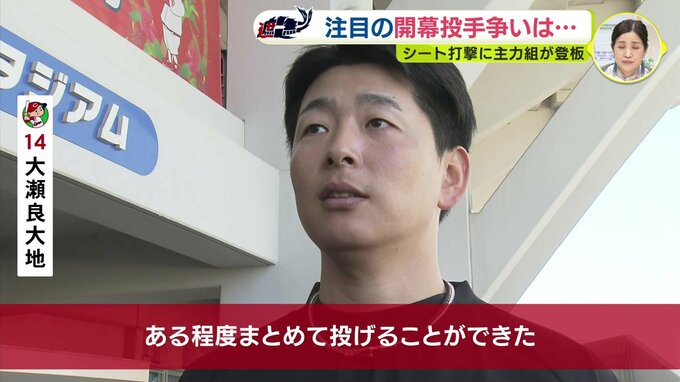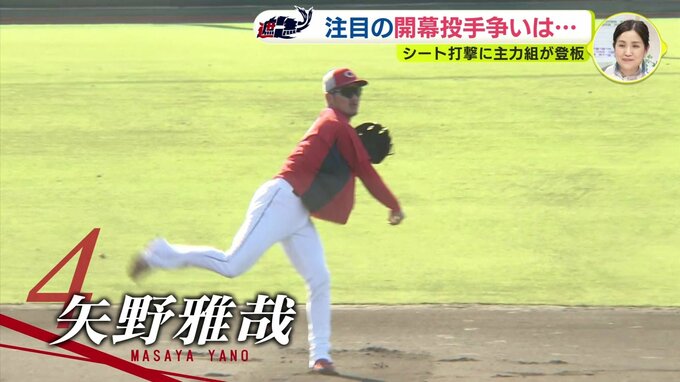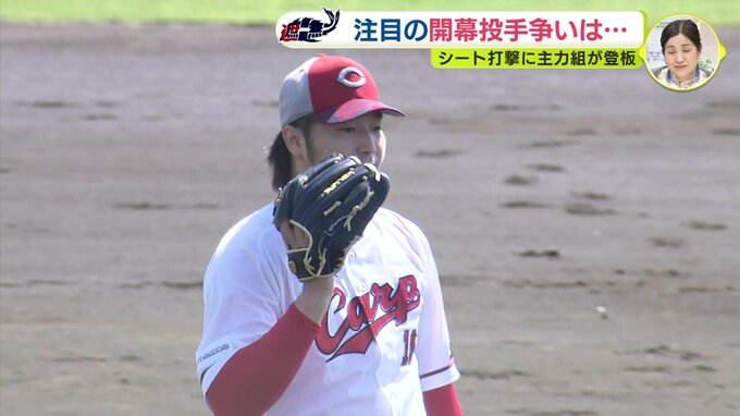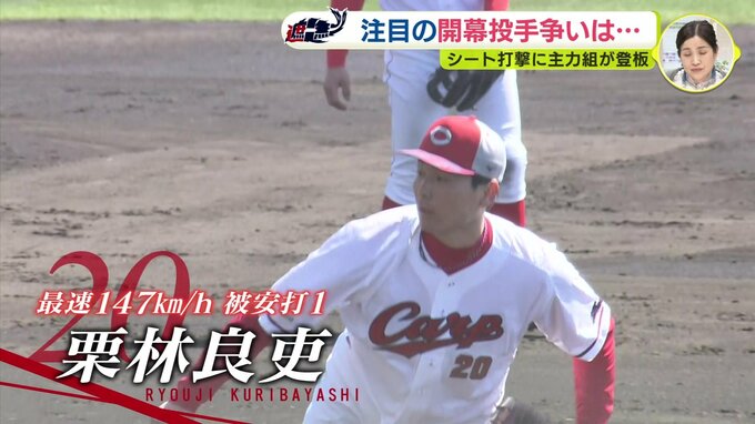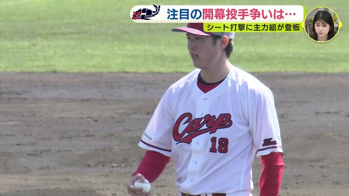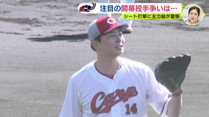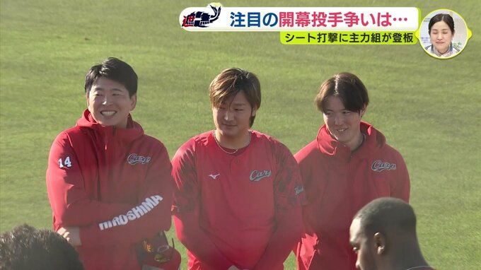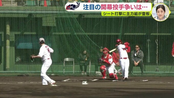 シート打撃の最後には守護神・栗林良吏も登板。ストレートの質を課題にあげましたが、左足の上げ方を変えた新たなフォームの手ごたえを実感。開幕に向け、順調に調整を進めています。