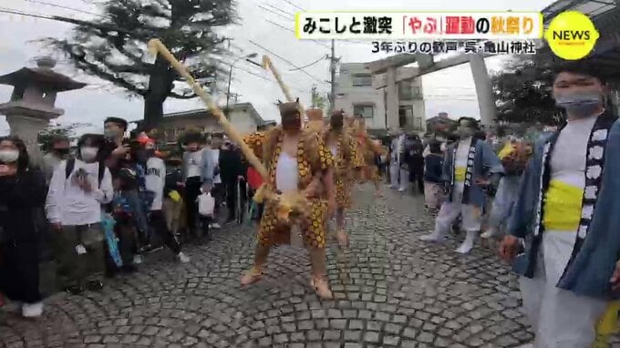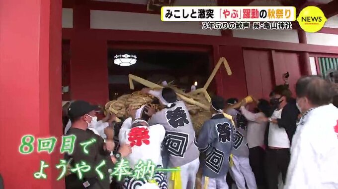 久しぶりに鬼たちが躍動しました。広島・呉市の神社の秋祭りです。3年ぶりに「やぶ」とみこしが、激しくぶつかりあいました。