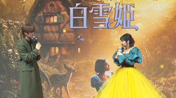 俳優の吉柳咲良さん、JO1の河野純喜さんが映画『白雪姫』プレミアム吹替版ジョナサン役声優お披露目イベントに登壇しました。