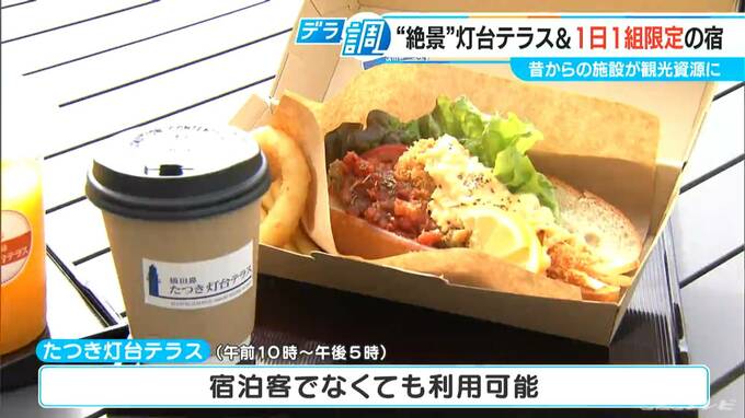テラスは、宿泊客でなくても利用でき、天気の良い日は灯台を見ながら食事を楽しむことも。地元の住民は…