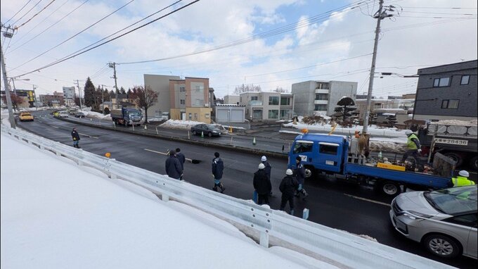 26日午前、札幌市清田区の道道で、道路が陥没しているのが見つかりました。現在、付近の道路は一部通行止めになっています。